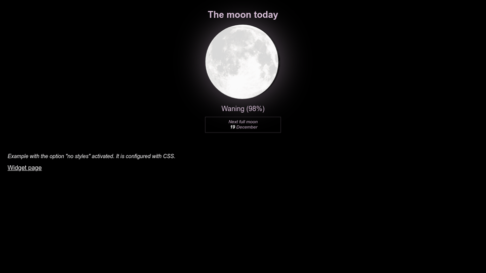 See the Pen Calendar Widget by Ciprian Ionescu ciprianionescu on CodePendefault. Explore in the sandbox Open in CodePen View live. Enter your location below and choose the settings options and theme that you like.